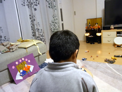 ぼんぼりに明かりを灯したが、 それどころではないS。 |