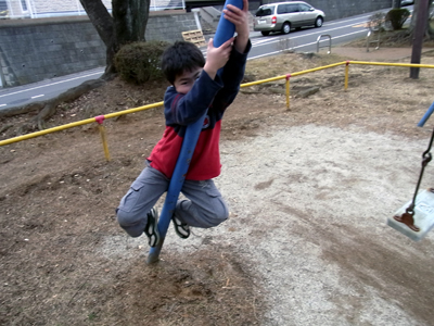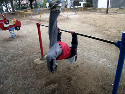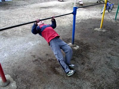 野外逆上がりは、未だ成功せず。 苦手意識で腕が伸びきってしまう。 |