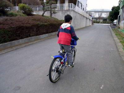 帰りに遠回りして、坂道自主練習。 ややゆるめの坂を、2回制覇。 大喜びだった。 |