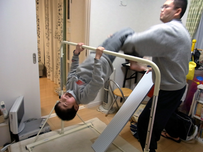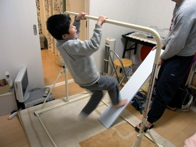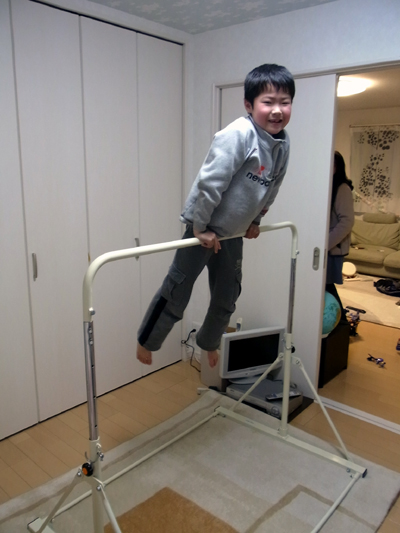 一番高くして、逆上がり。 |