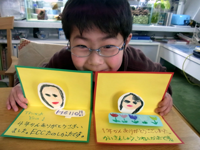1年間お世話になった担任の先生と、 ECCの先生、お友達・・・。 |