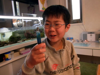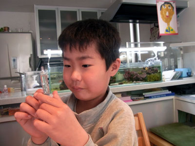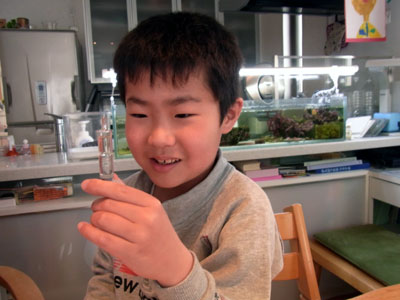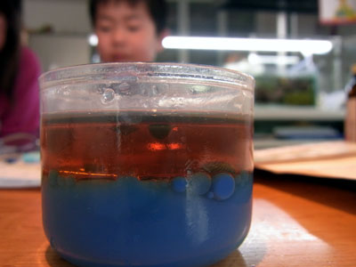 ・・・。 どっちが水でどっちが油か、 わからなくなったようだ。 |