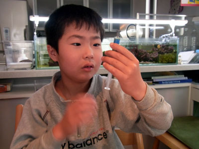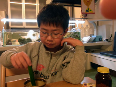 今日は「マヨネーズを作ろう」 、水と油の性質を学ぶ。