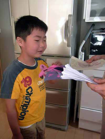 得意顔のS。 リビングに入る前、隠し場所を探して、 バタバタと家の中を走り回っていたそうだ。 |