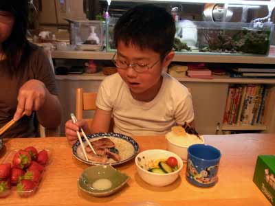 ところが夕食まで食欲不振のS。 自転車で疲れ果てさせてしまったか。 |