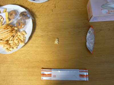 寝る前に、TV見ながらおにぎり攻撃。 |