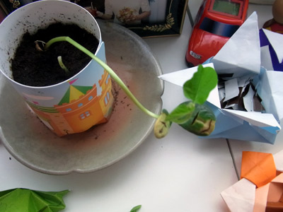 小学校で咲かせたチューリップ、 家でもやると球根を持ち帰った。 |