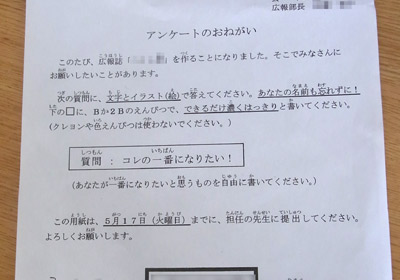 PTAの会報誌のアンケート、 「コレの一番になりたい!」 に、S。 |