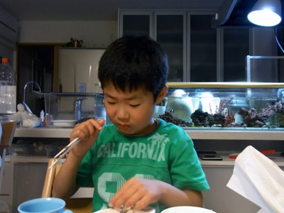 顔が曇ったと思ったら、 Sの口から魚の骨が沢山出てきた。 |
