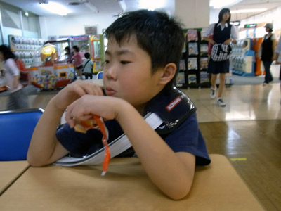 レッスン後、スーパーのベンチで栄養補給。 |