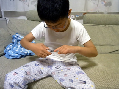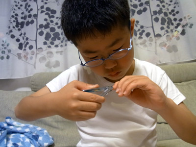初めて自分で爪を切る。 |