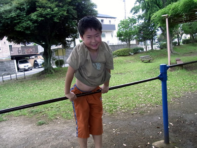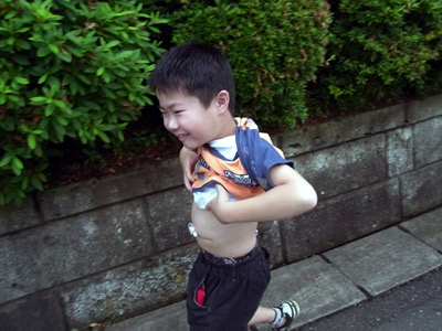 相変わらず服は前後ろ。 道ばた着替え。 |