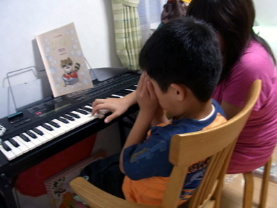ドレミだけで音当てクイズ。 ずいぶんわかるようになってきている。 |