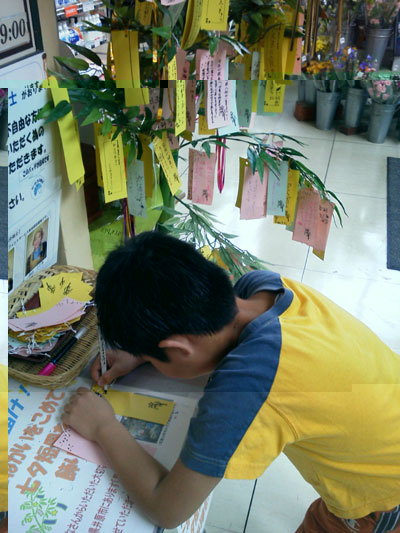 七夕の短冊作り。 |