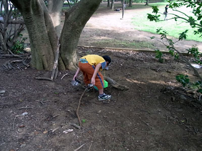 闇雲に地面を掘り返す。 |