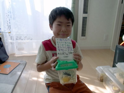 もらったカブを手に、お手紙写真。 来年も会えるといいね。 |