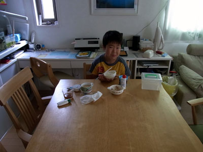 皆食べ終わって、ポツネンと。 |