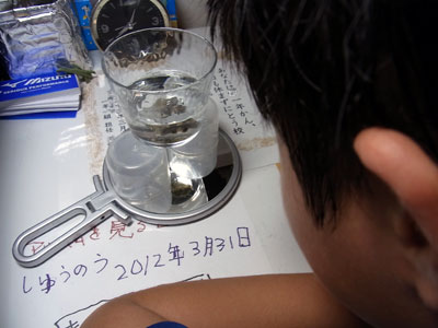 急遽、ヤドカリ観察セットを組む。 |