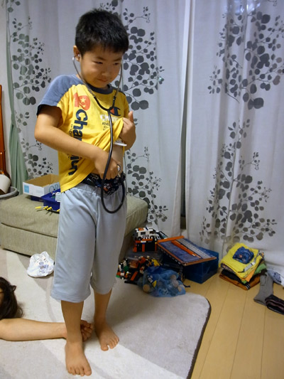 Hの心音確認。 ・・・よくきこえない。 |
