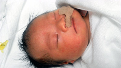 保育器の上部がオープンになっている。
