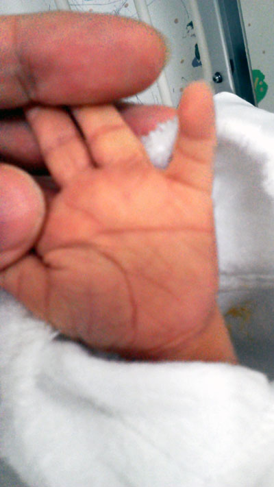 これが左の手相。 横一文字かと思ったが、 ズレているようにも見える。 |