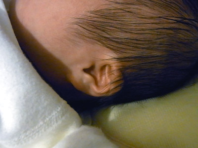 出生児は耳たぶがくしゃくしゃに折りたたまれてた。