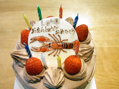 Sの8才の誕生日を、4人でお祝い。 絵はババ様のをケーキ屋さんに持ち込んで、 描いてもらった。 |