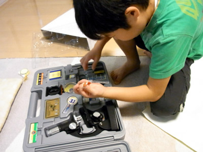 プレゼントは顕微鏡。 目指せ、実験小僧。 |