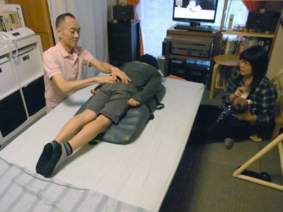Sも受けてみた、整体。 思ったほどゆがんではいないそう。 |