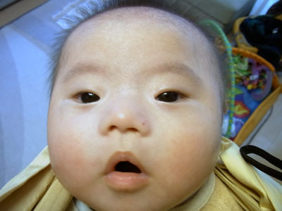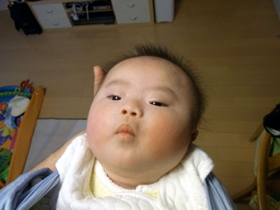 対面抱っこするとポケンと開いていた口が、 閉じるようになった。 |