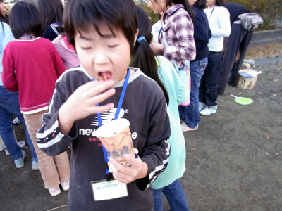 チョコレート蒸しパンは、蒸し不足の生状態。 それでもチョコ片が入っており、 ヤメレと言ってもバクバク食べていた。 |