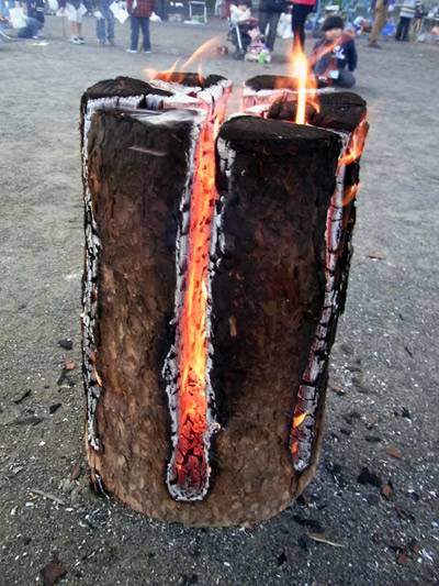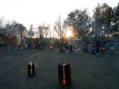 陽が落ちても、焚き火のおかげで寒くない。 |