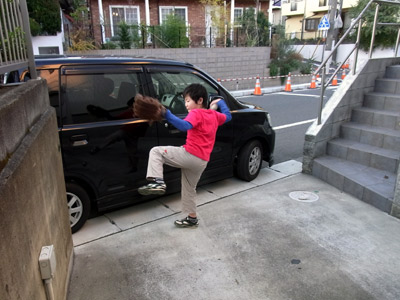 まるで野茂さん?! よく前に投げられるよな・・・。 |