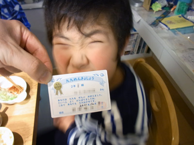 九九テストに合格し、免許取得。 班で一番に受かったらしい。 照れちゃって、S。 決してデキるヤツではない。 継続だけが綱だ。 Sもおママも頑張っている。 |