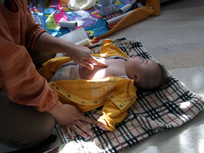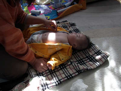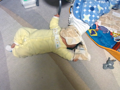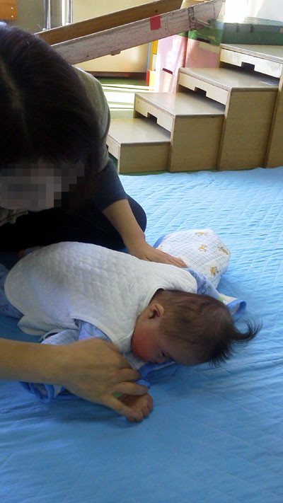 ダウン症の子は腹筋が弱く、腹筋を使わない。