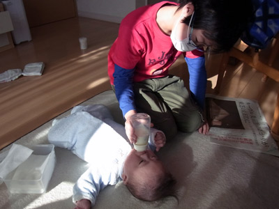墜落寸前、体調激ワルのおママと交代、Hにミルク。