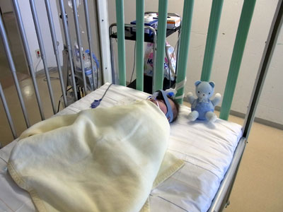 病院で、点滴をして、できる範囲の促しを試みる。