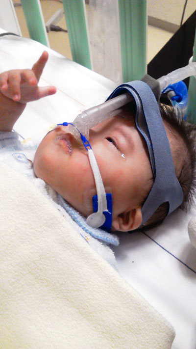 Hは生後しばらく、時折血中酸素濃度が急激に落ちる症状があり退院が長引いた。