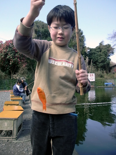 とにかく「釣る」という体験をさせる。 一番簡単な金魚コース。 |