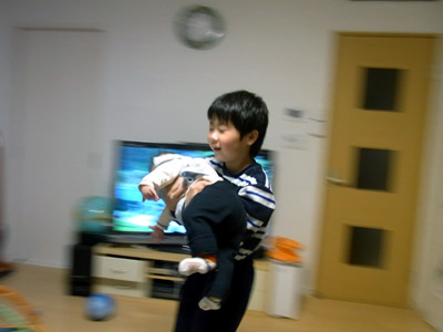 すぐさま隣の部屋にボールを蹴りに行く。 |