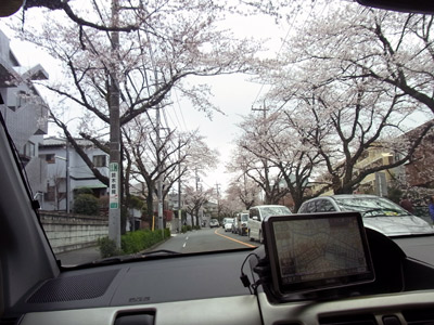 桜のトンネル。 花見渋滞だ。 (S撮影) |