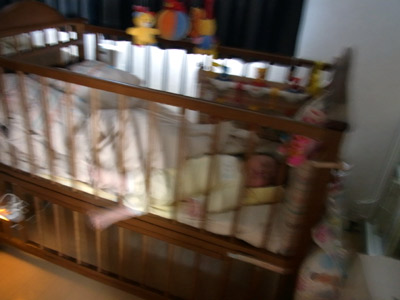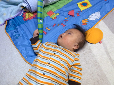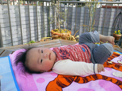 朝のH。 珍しく寝相が悪かった。 きっとハイハイを始める前兆だ。 |