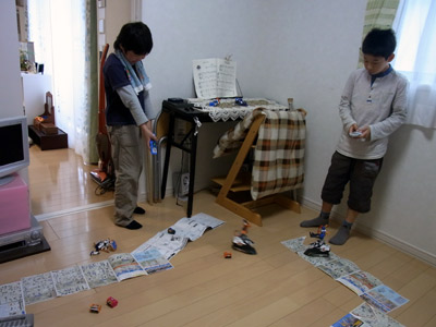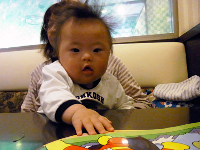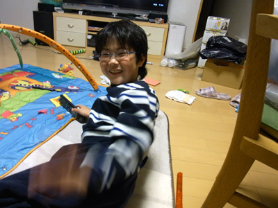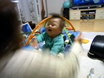 Hを座らせてみる。 視野が広がり、どんどん手がでる。 |