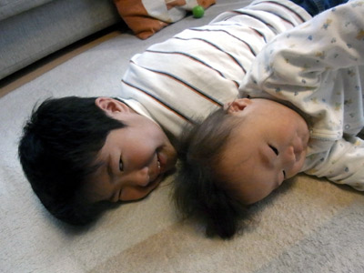 HのマネをするS。 |