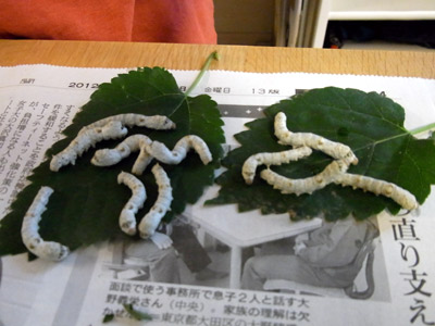 Sはご自慢のカイコたんを披露。 |