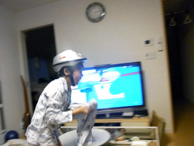 どうもクワガタを捕りに行きたくて、練習が終わってすぐに帰ってきたらしい。