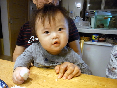 ご飯をカチカチに固めたおやっきー これは大好きで、上手である。 |
