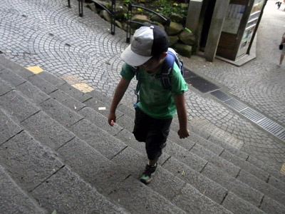 今度はアゲインストの風と闘いながら、島を上がる階段に辿り着いた。
