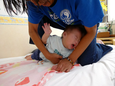 手足の伸展のさせ方をご指導頂いた。
