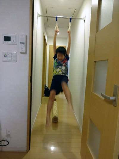 奇声を発しながらリビング中を跳ね回っている。